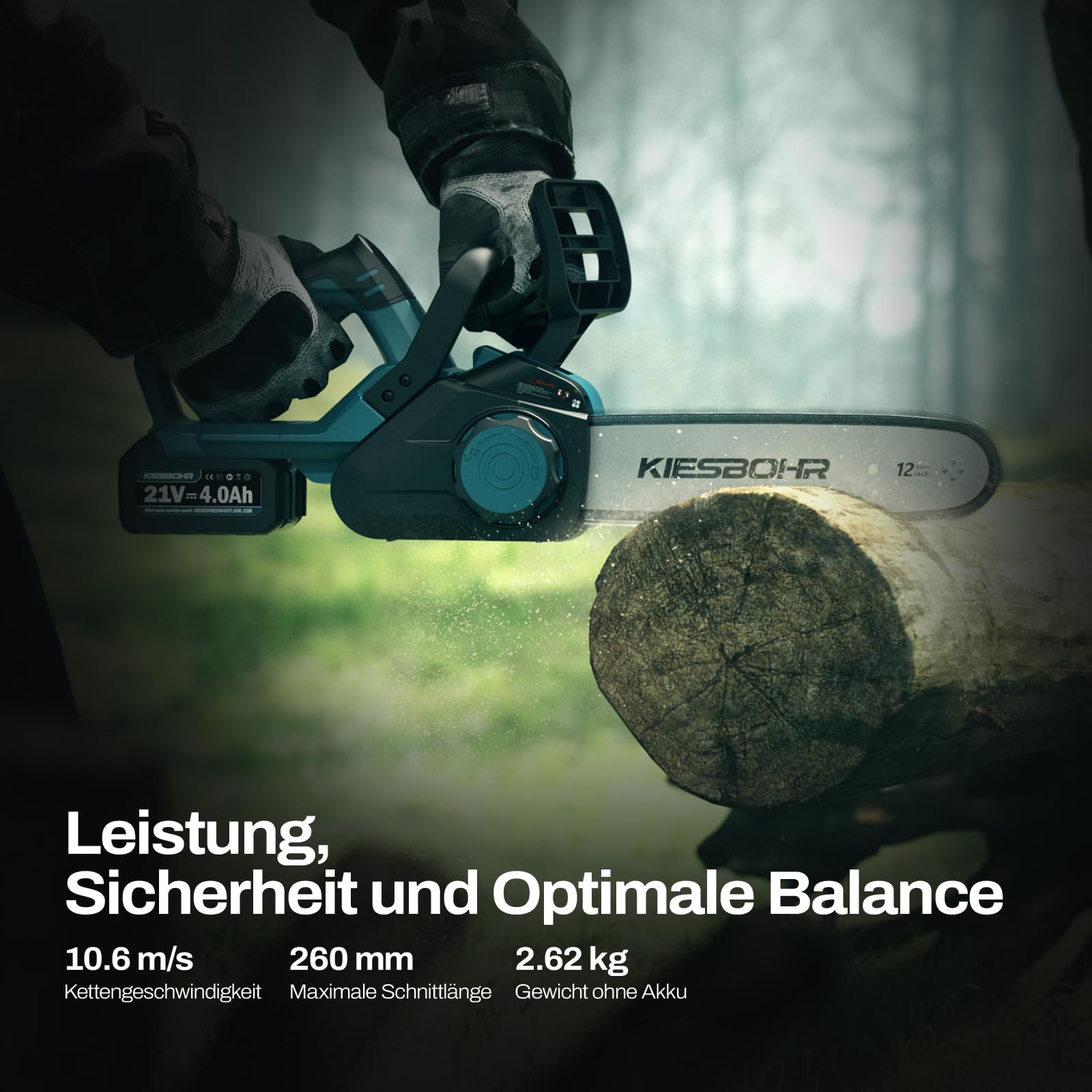 - WAS DU BEKOMMST: KIESBOHR CSX001 Kettensäge ohne Akku, zwei Ketten, 24-Stunden-Sorglos-Service und eine 1-jährige Garantie.